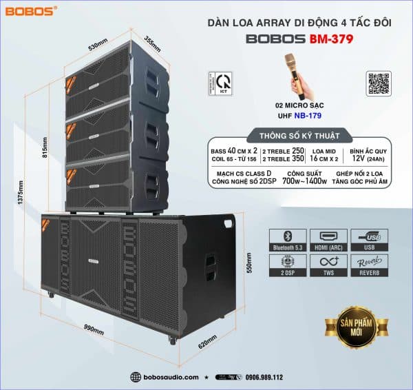 * Cấu hình dàn loa Array di động BOBOS BM-379T: