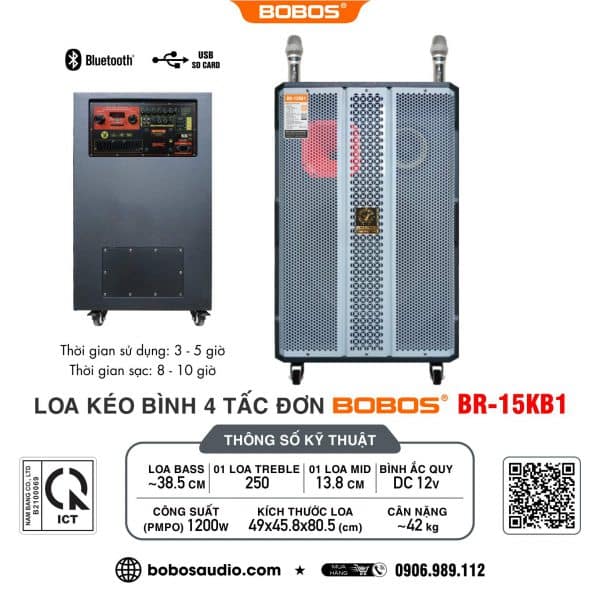 (THIẾT BỊ ÂM THANH ĐA NĂNG DI ĐỘNG THƯƠNG HIỆU BOBOS – MODEL BR-15KB1)